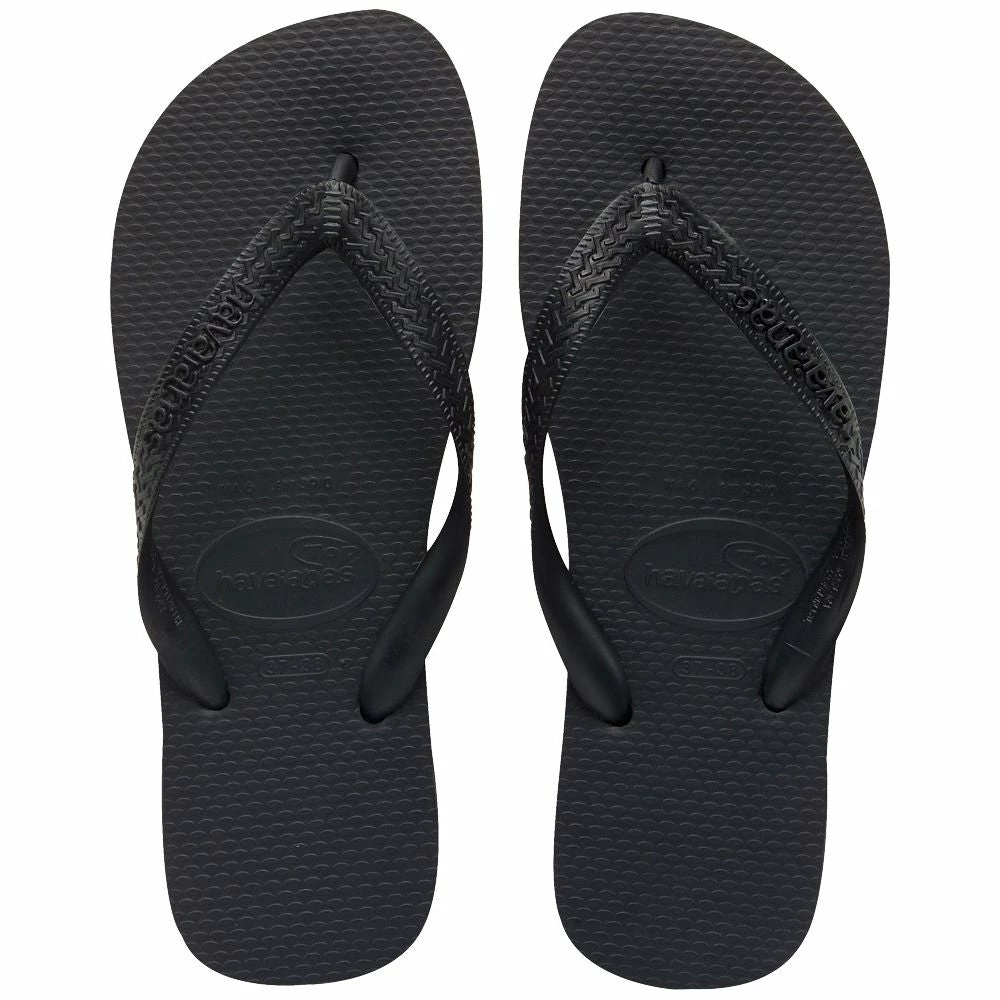 The Havaianas Men’s Top Flip Flop in Black comes in a rainbow of colors to match any ensemble. A tonal Havaianas logo on a matte strap and our signature textured footbed provide style and comfort.• Thong style • Cushioned footbed with textured rice pattern and rubber flip flop sole • Made in Brazil